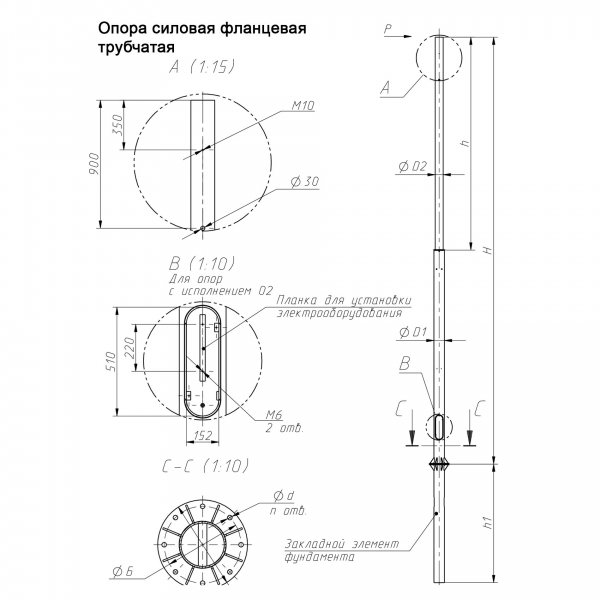 Силовая фланцевая опора позволяет осуществлять как воздушный подвод кабельной системы, так и подземный, что значительно расширяет область их применения. Конструкция опор отличается большой устойчивостью и может быть установлена в местах с сильными боковыми нагрузками, в том числе ветровыми.